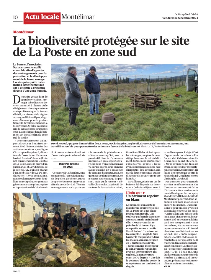 Sur le site de la plateforme courrier et colis à Montelimar, Naturama a installé plusieurs équipements pour préserver la biodiversité